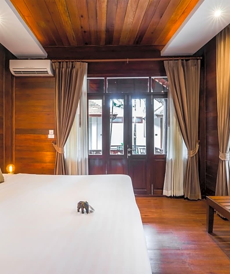 Grand deluxe villa is 344 square feet and includes a king-size bed 150-183 width.